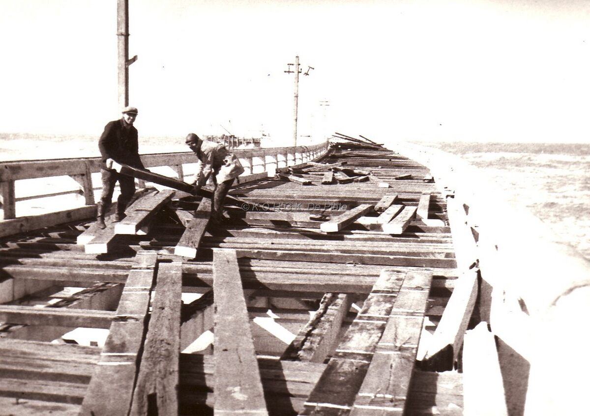Het Weststaketsel na de doortocht van een zware voorjaarsstorm (1949).