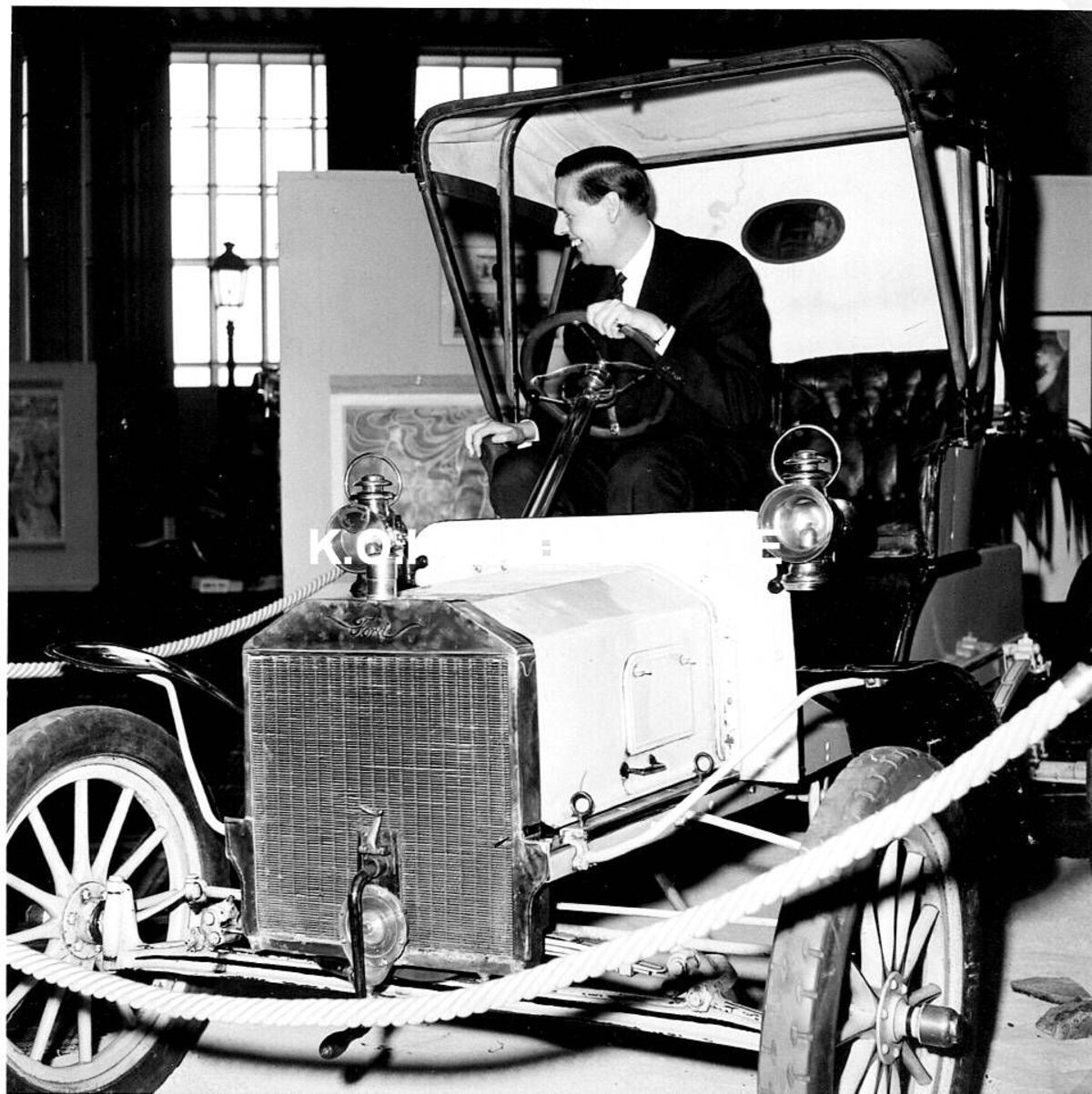 Formaat : 13 x 18 cm. - Burgemeester Jan Piers in een oldtimer tijdens de opening van de tentoonstelling.
