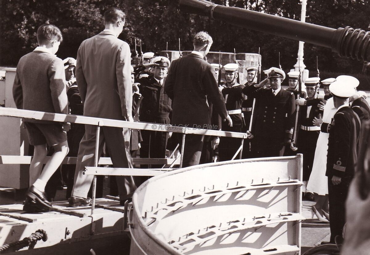 Foto : Koninklijke familie aanwezig bij de terugkeer van Prins Albert van zijn instructiereis aan boord van het fregat "LTZ Victor Billet". 01/08/1953 (02c)