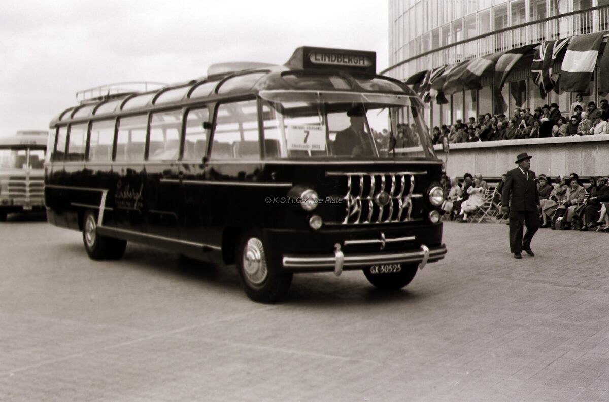 Defilé op de Albert I Promenade nabij "Petit Nice". Een autobus van de firma "Lindbergh".