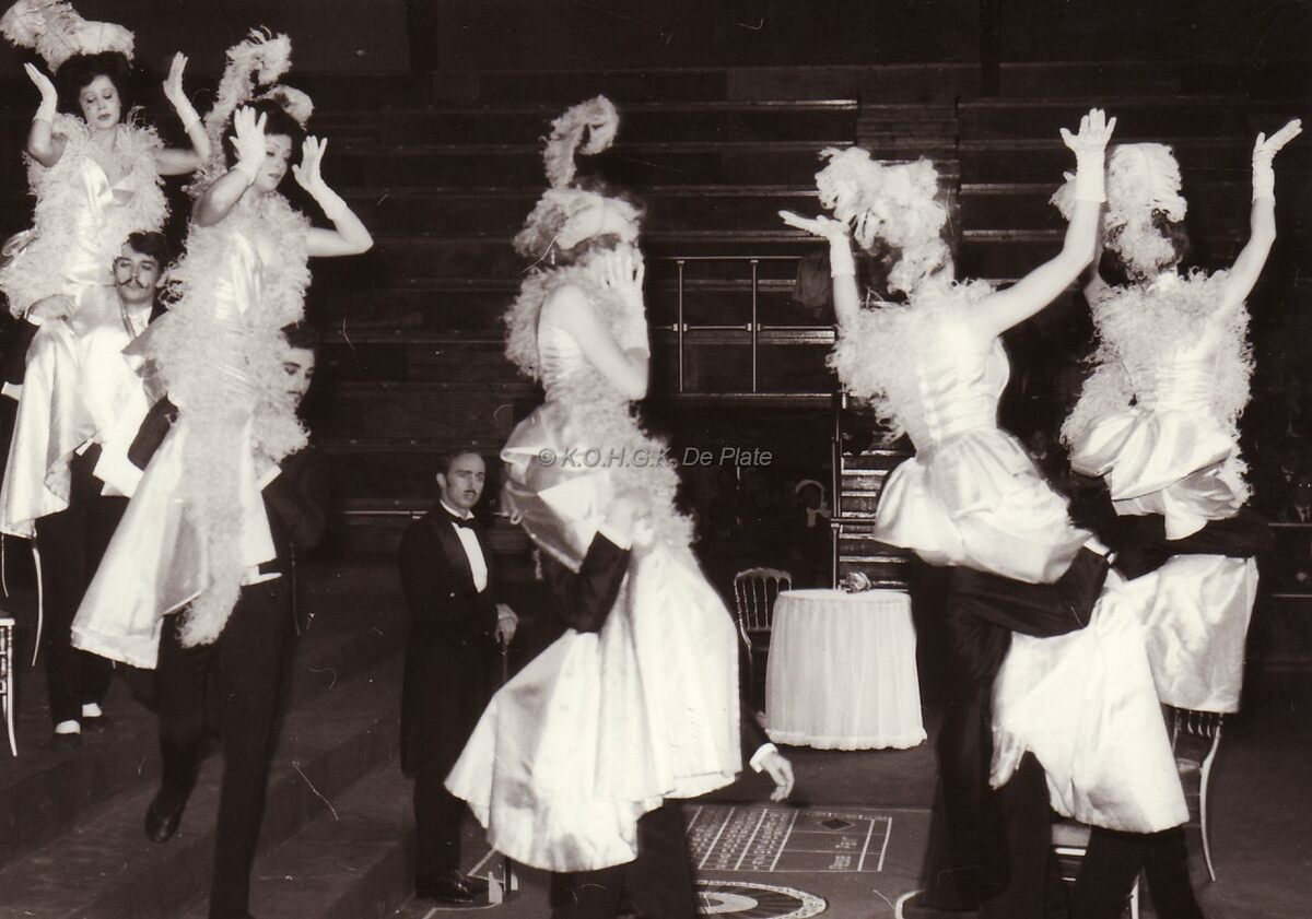 Scene uit de Oostendse Revue 1950, dansers met hun partner op de schouder.