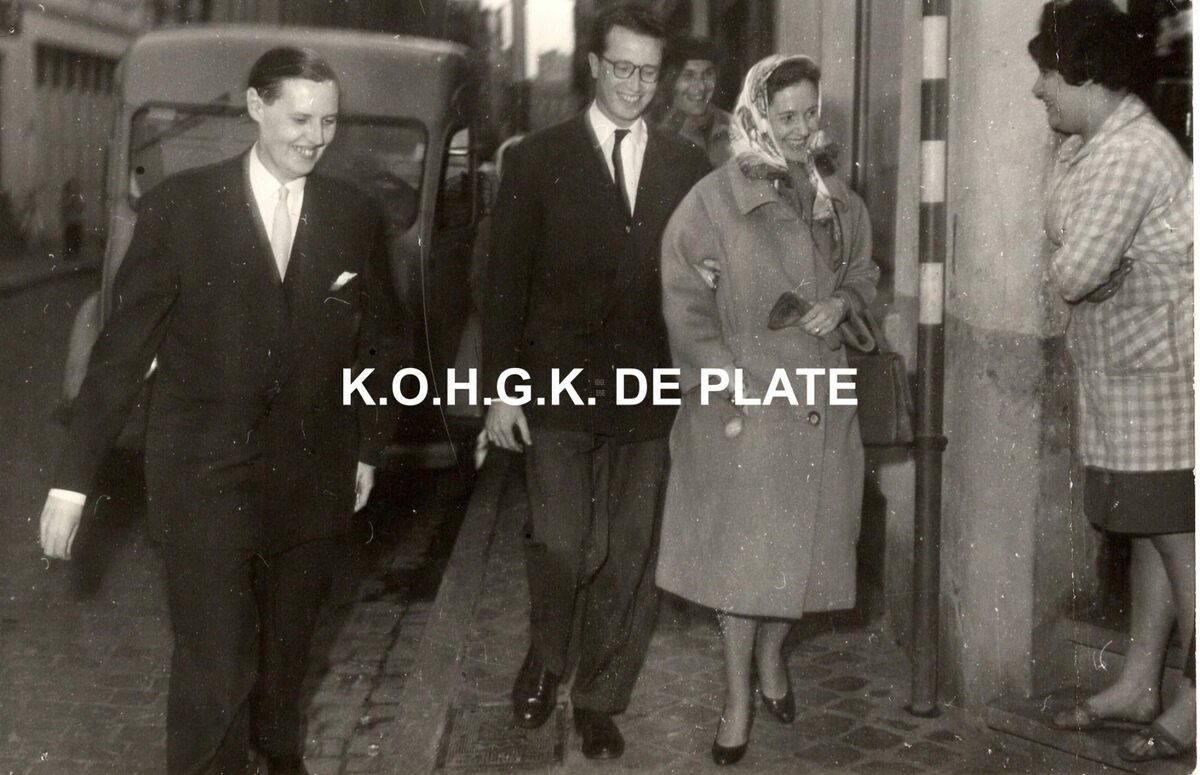 Foto : 11,5 x 16 cm. - Hier in aanwezigheid van burgemeester Jan Piers. Zij brachten ook een bezoek aan het echtpaar Defebere-Cheullet die hun diamanten bruiloft vierden.