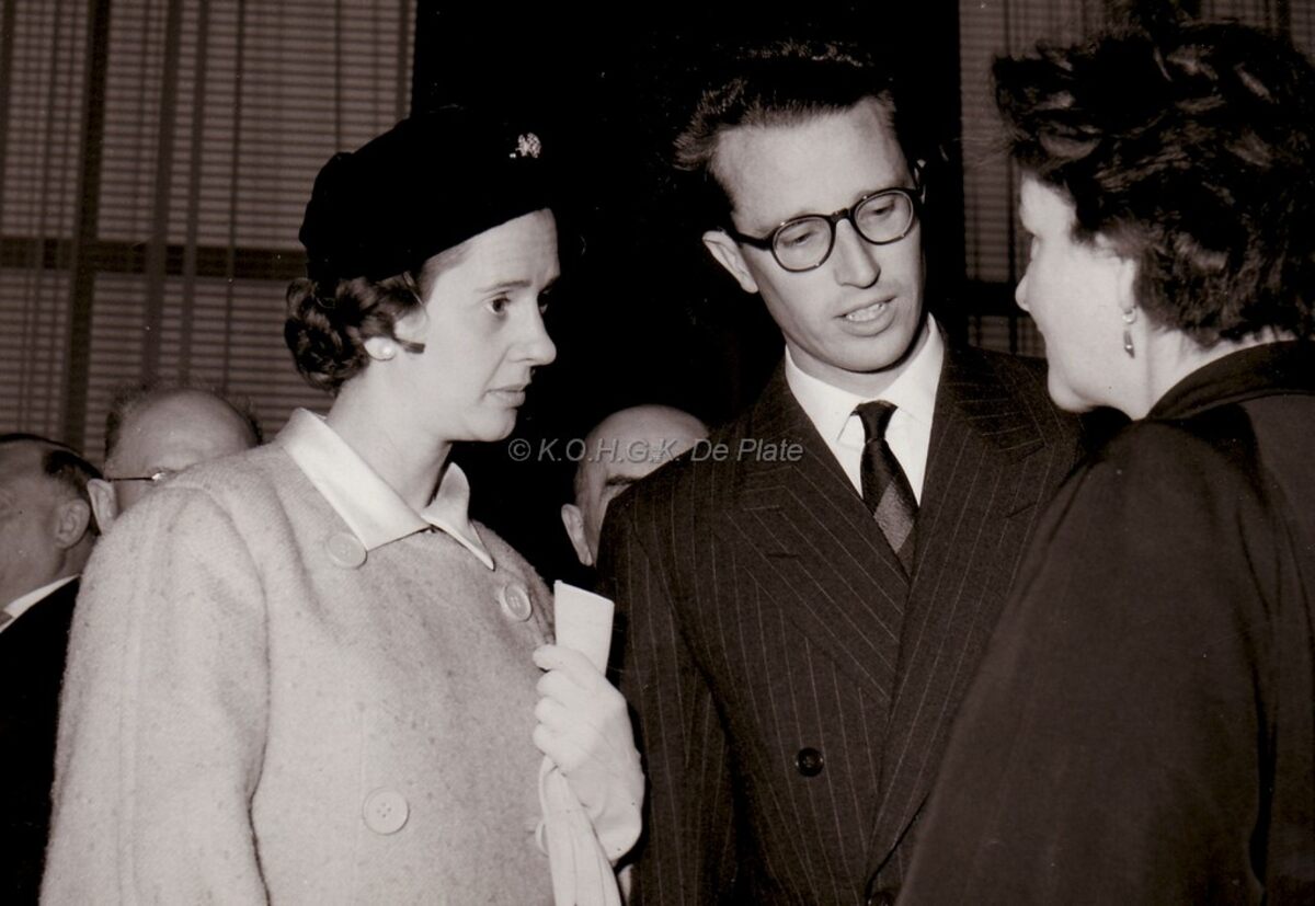 Formaat : 13 x 18 cm. - Een onbekende dame in gesprek met Koning Boudewijn en Koningin Fabiola.