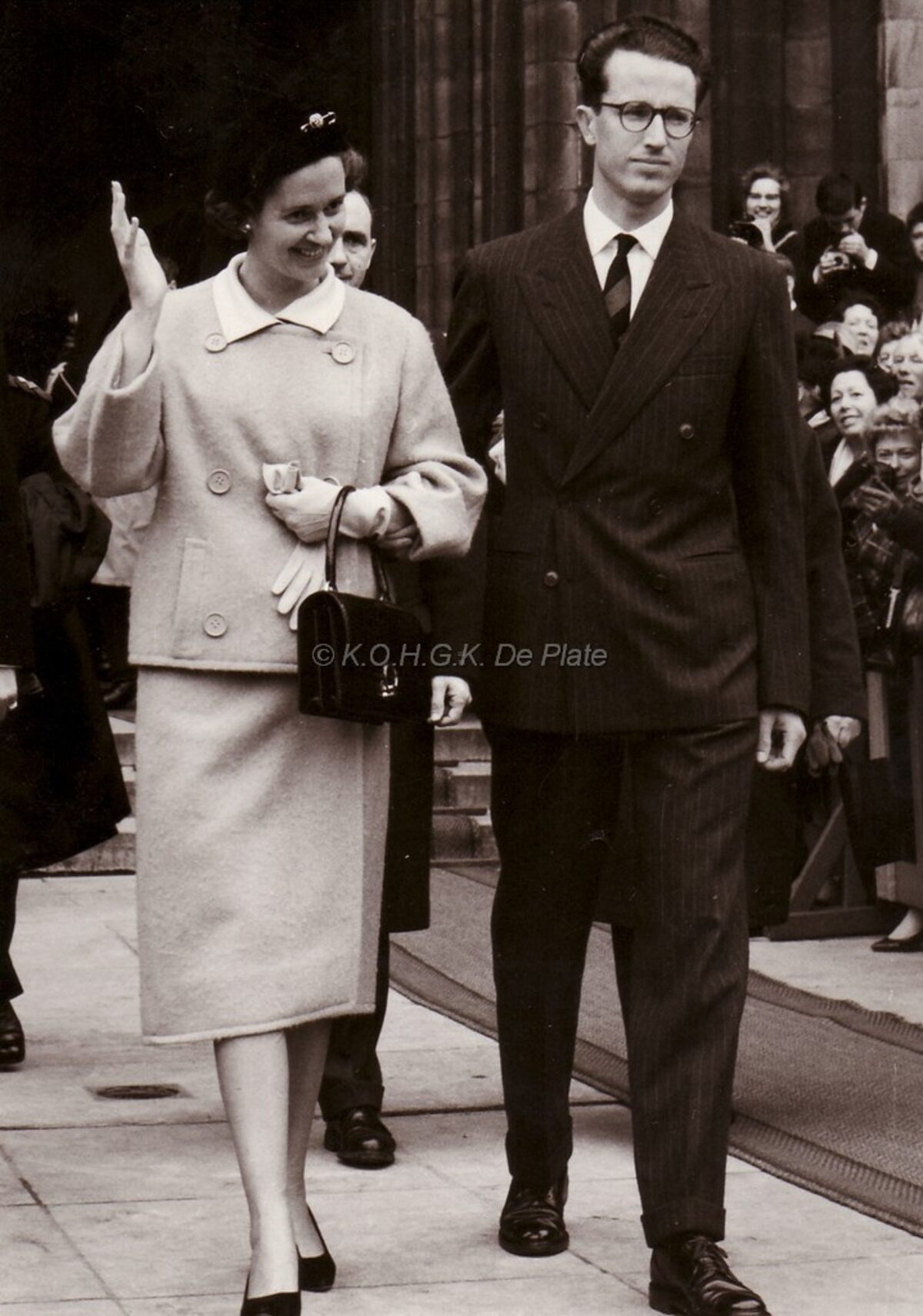 Formaat : 18 x 13 cm. - Koning Boudewijn en Koningin Fabiola verlaten de Sint Petrus en Paulskerk na het bijwonen van de vissersmis