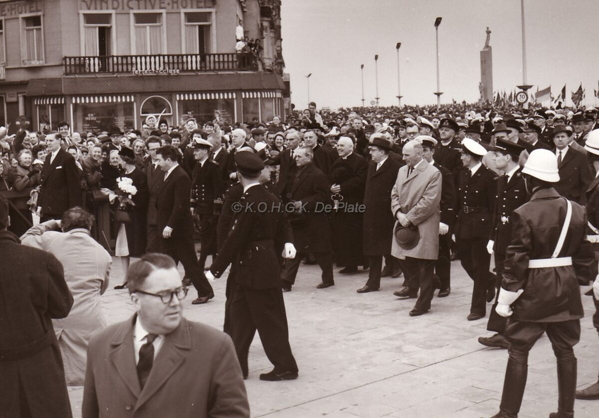 Formaat : 13 x 18 cm. - Na afloop van de hulde aan het Monument der Zeelieden zijn Koning Boudewijn en Koningin Fabiola op weg naar de Royal North Sea Yacht Club waar zij zullen ontvangen worden door ere-commodore Georges Timmermans. Daarna gaan zij hun huwelijksgeschenk van de Stad Oostende de O.1 "Fabiola" in ontvangst nemen.