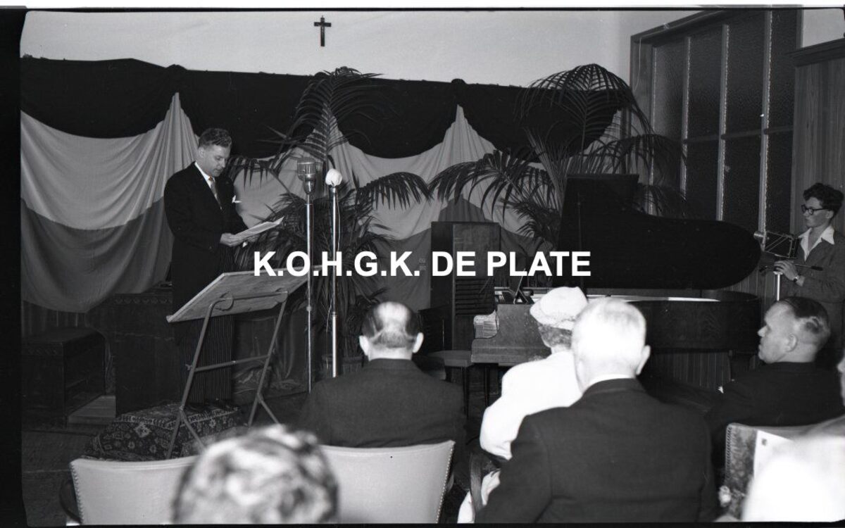 Negatief : 6 x 9 cm. - Edmond Leburton, minister van volksgezondheid en gezin, houdt zijn toepraak.