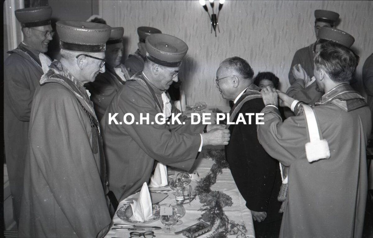 Foto : Banket en intronisatie "La Tripière d'Or". Confrérie de Gastronomie Normande. 03/11/1958