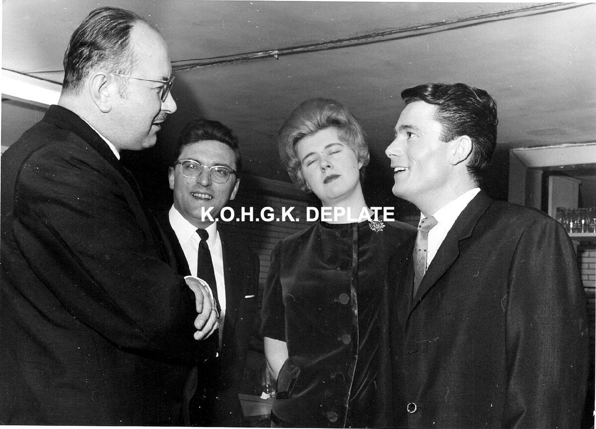 Formaat : 13 x 18 cm. - De Franse zanger (rechts) in gesprek met Roger De Ramée (links), directeur van de Kursaal.