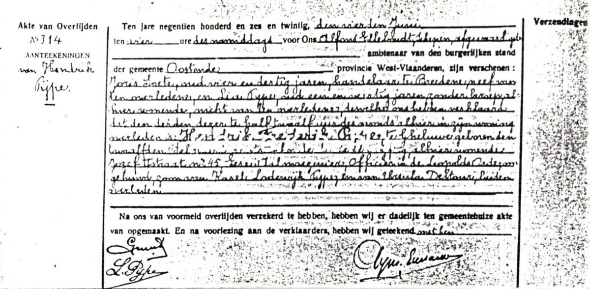 Akte van overlijden Hebdrik Frederik Pype (Paster Pype)Kopie