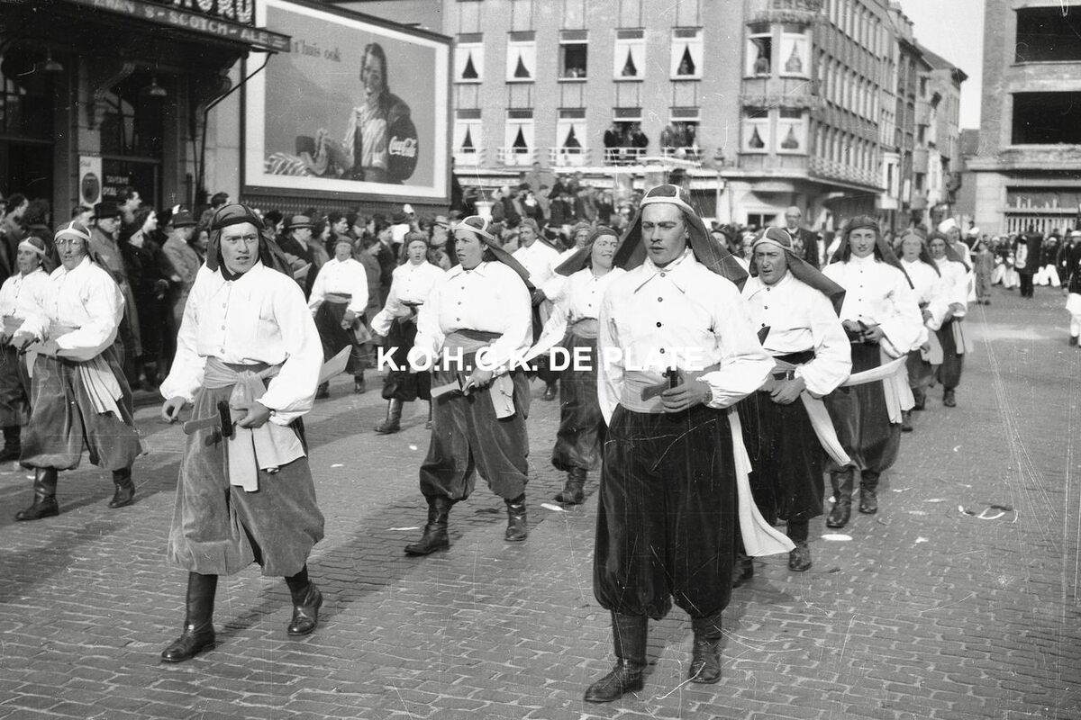 Negatief : 4 x 6,5 cm. - De groep Ali Baba en de 40 Rovers hier op het Wapenplein