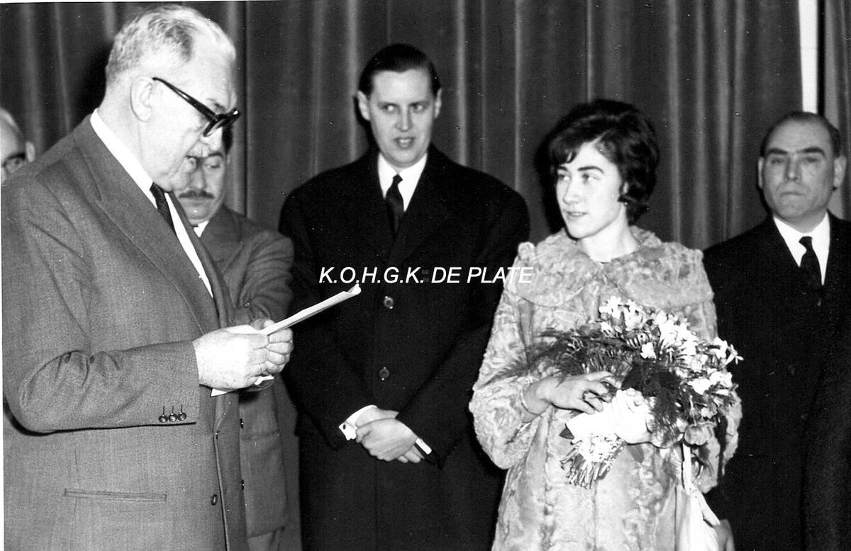 Plechtigheid naar aanleiding van de tewaterlating. De heer Williams houdt een toespraak namens de directie van de scheepswerf. Rechts, de meter van het vaartuig, Jeanine Lambregt en naast haar burgemeester Jan Piers en Roger De Kinder. - Map 2009/0842-4