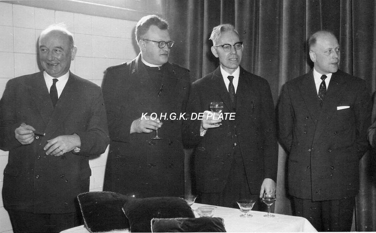 Plechtigheid naar aanleiding van de tewaterlating. Van links naar rechts, Kamiel Dehouck, E.H. Daniël Van Parijs, Dries Claeys en (?). - Map 2009/0842-7