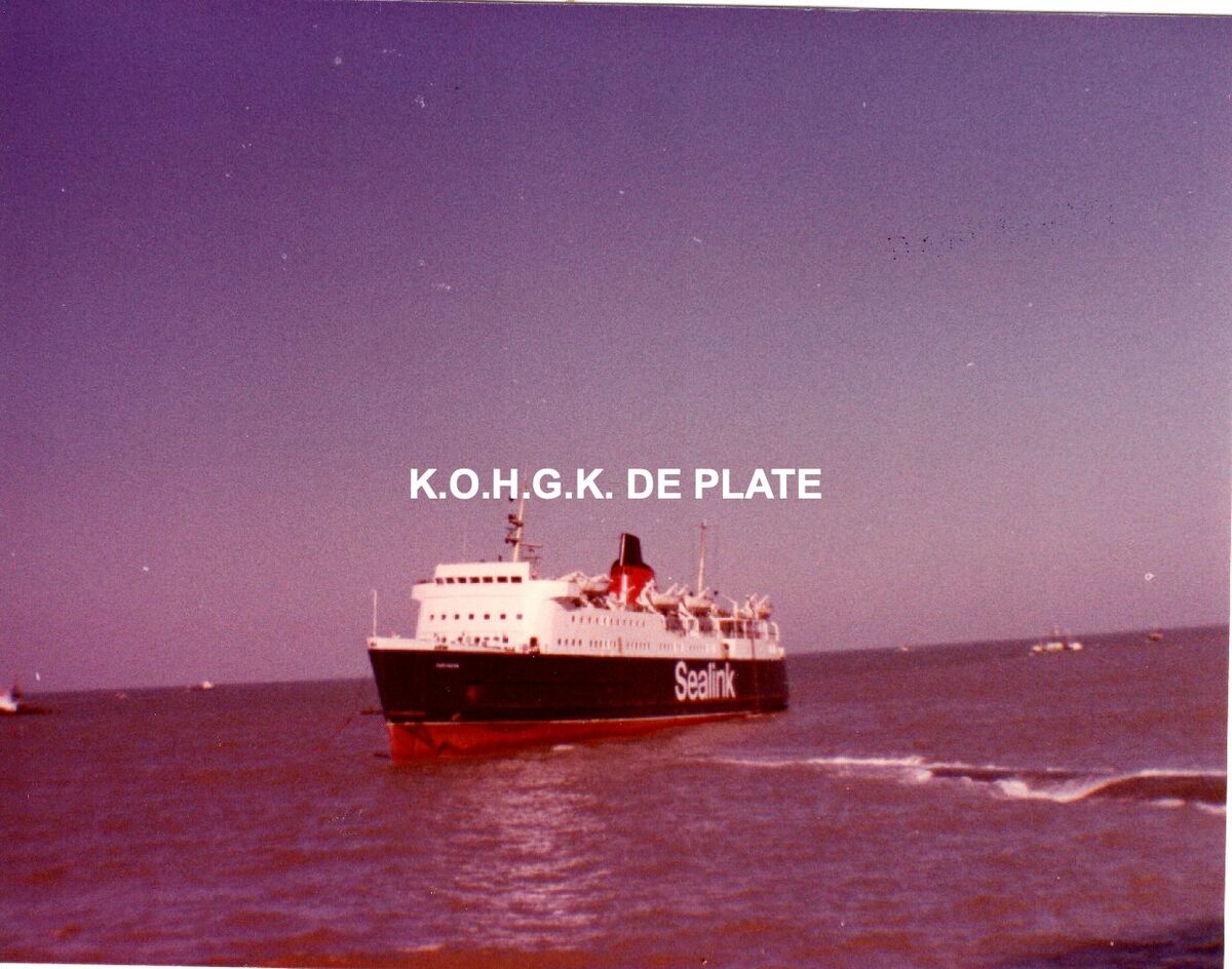 Foto : Caferry "Vortigern" gestrand op een golfbreker