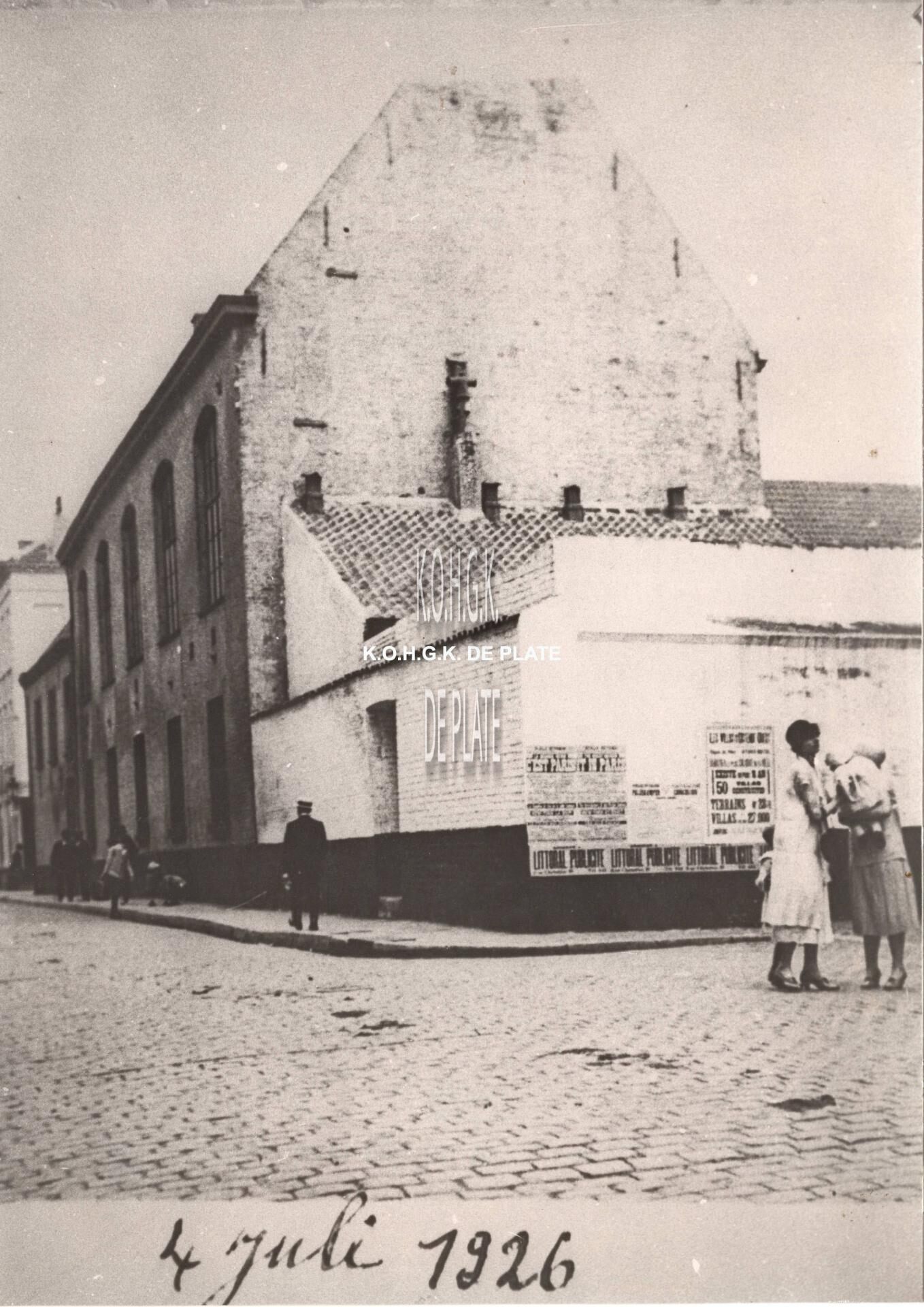 Formaat : 17 x 12 cm. De Wittenonnenstraat richting de Christinastraat. De militaire kazerne op de hoek met de Aartshertoginnestraat.