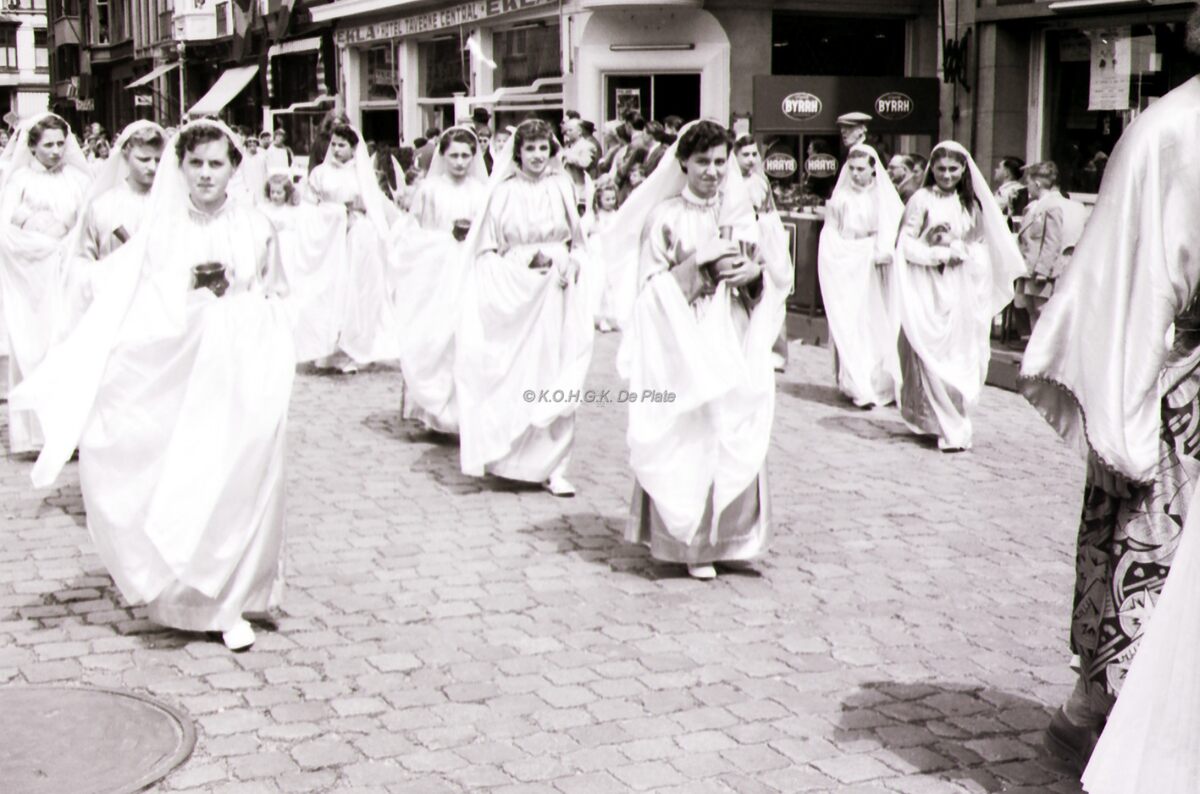 Een groep Oostendse meisjes in de Zeewijding op het Wapenplein.