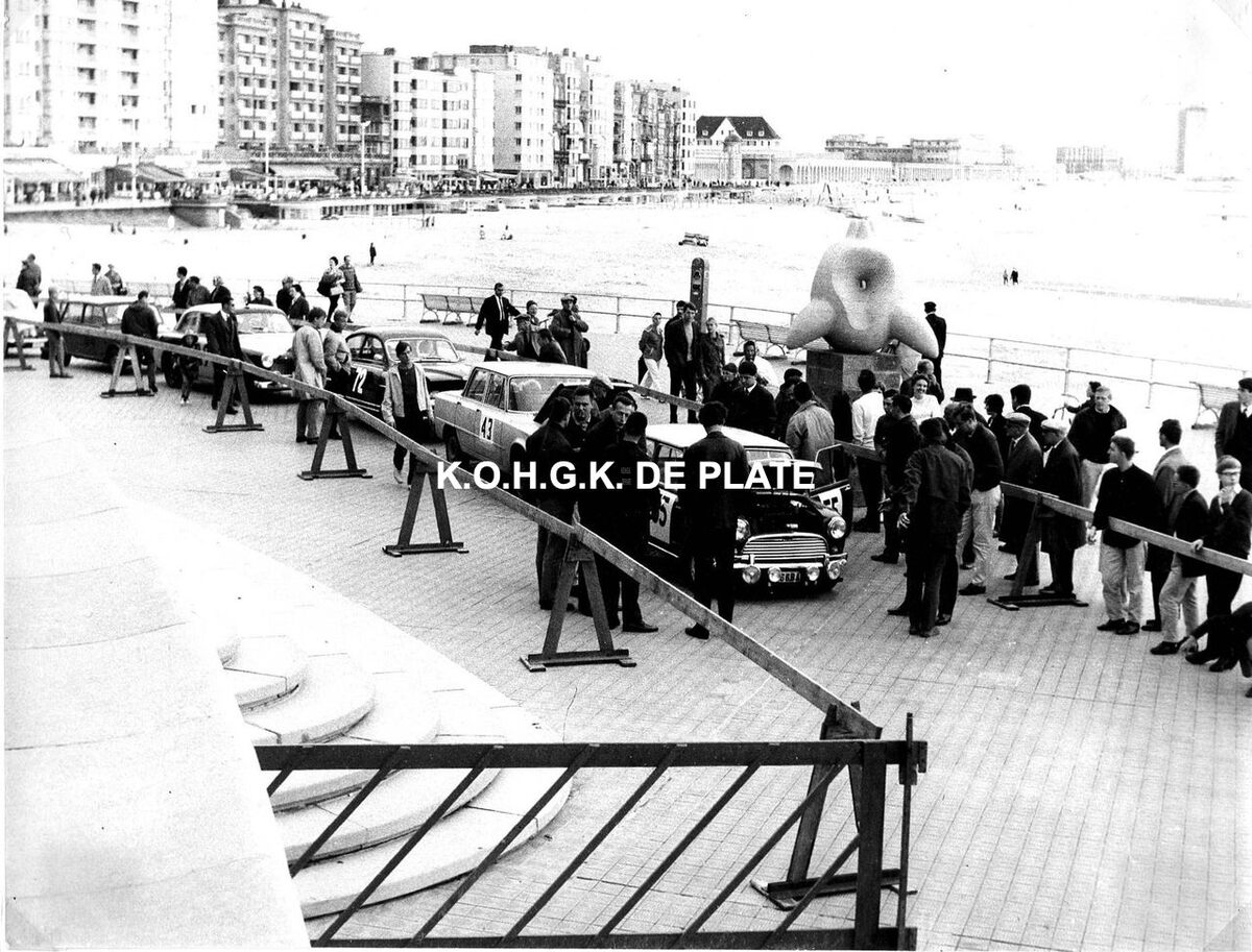 Formaat : 18 x 24 cm. - De eerste editie. Hier aan Petit Nice langs de Albert I-Promenade. Op de achtergrond, het Groot Strand en de appartementen langs de Albert I-Promenade. In het midden, de Koninklijke Villa aan de Nieuwe Gaanderijen en op het einde rechts, het appartementsgebouw "Residentie Royal Palace". Vooraan, tijdelijk opgesteld een sculptuur van Gerard Holmens "Ruimtelijke Zelfstandigheid". Het staat nu in het Leopoldpark.