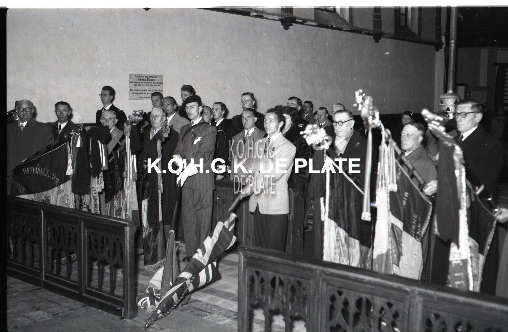 Foto : Jaarlijkse dodenherdenking. Nieuwe vlag "The Royal British Legion". Anglicaanse kerk. Langestraat. 04/11/1956