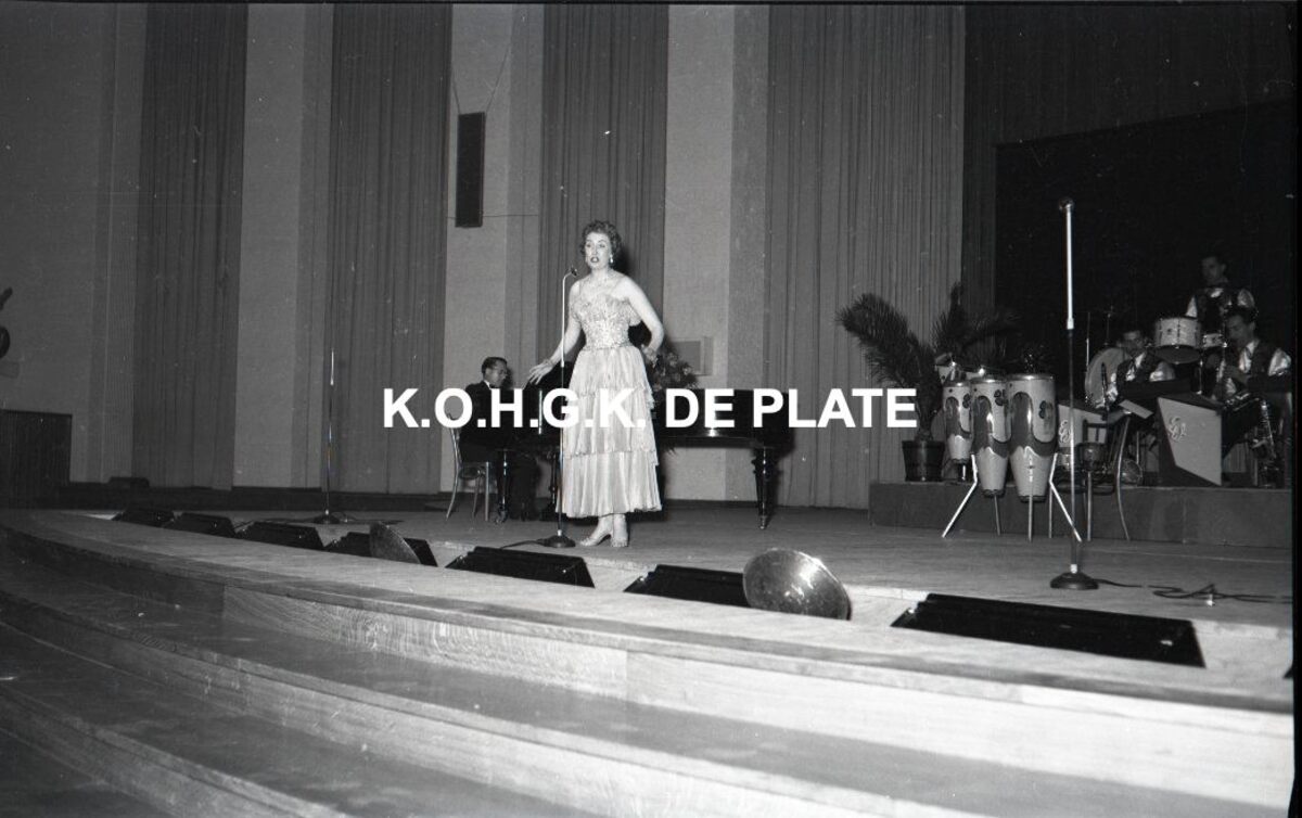 Negatief : 6 x 9 cm. - Zij trad op in de concertzaal met het orkest van Eddie Warner.
