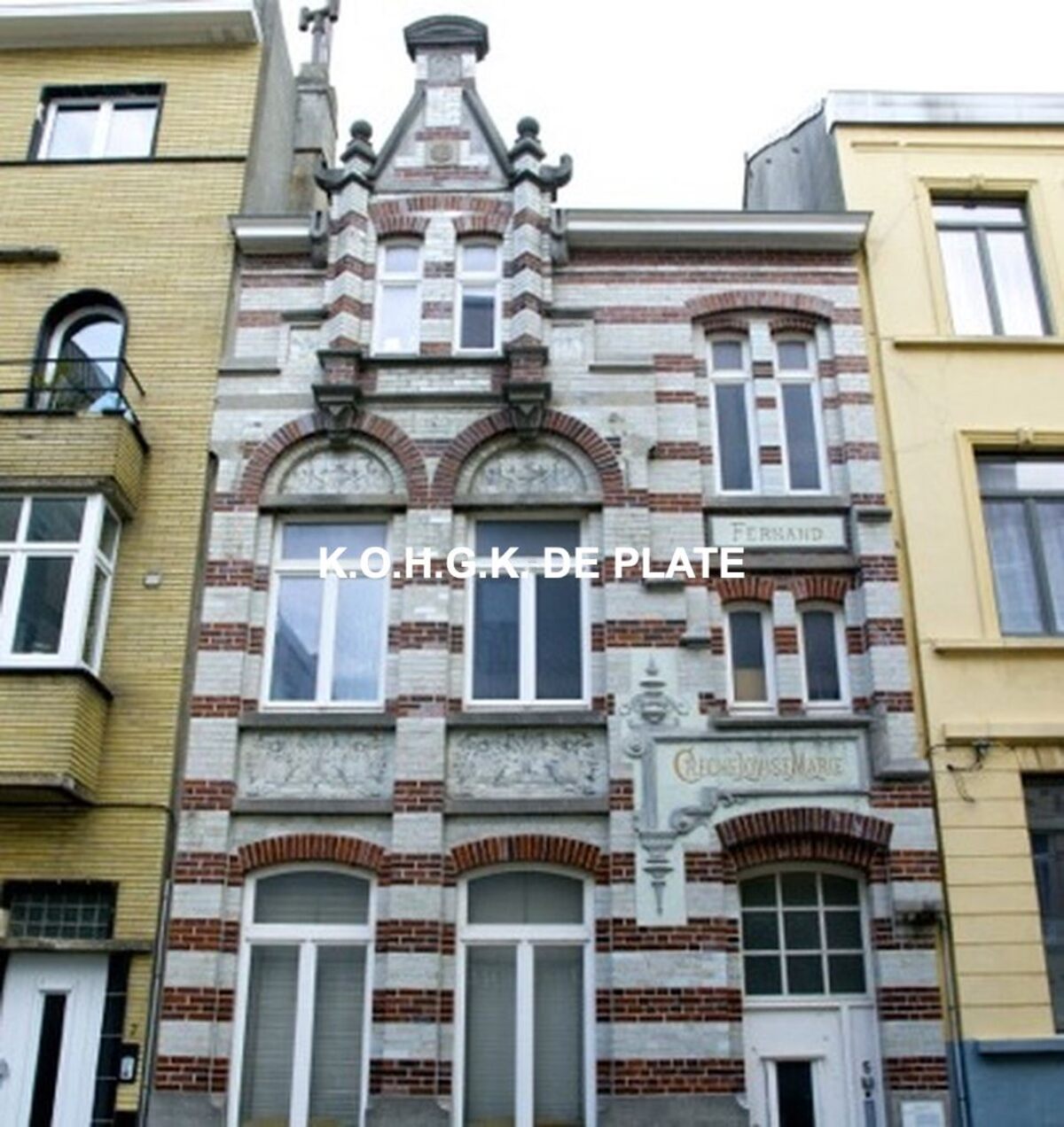 Formaat : 15 x 11 cm. - Eclectisch huis "Fernand", genaamd "Crèche Louise-Marie" (1892) naar onze eerste koningin Louise-Marie van Orléans (1812-1850). Met achterliggend kinderverblijf met lokalen rondom een overdekte speelplaats en aansluitend poortgebouw "Elisa" in de Langestraat 112b. Gebouwd naar de plannen van architect Antoine Dujardin (1848-1933). Interieur uitgevoerd door atelier Portaels. Beschermd als monument bij M.B. van 28/03/2001.