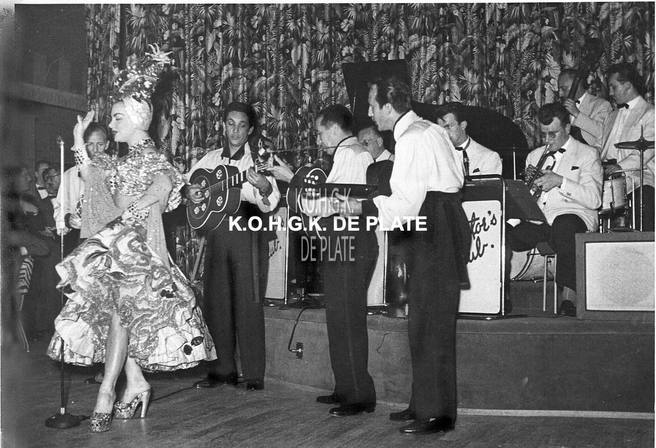 Formaat : 13 x 18 cm. - Hier in de Night Club "La Champagne" omringd door Juan Carioca en La Banda Lu. Op de achtergrond : "The Rectors Club Orchestra"