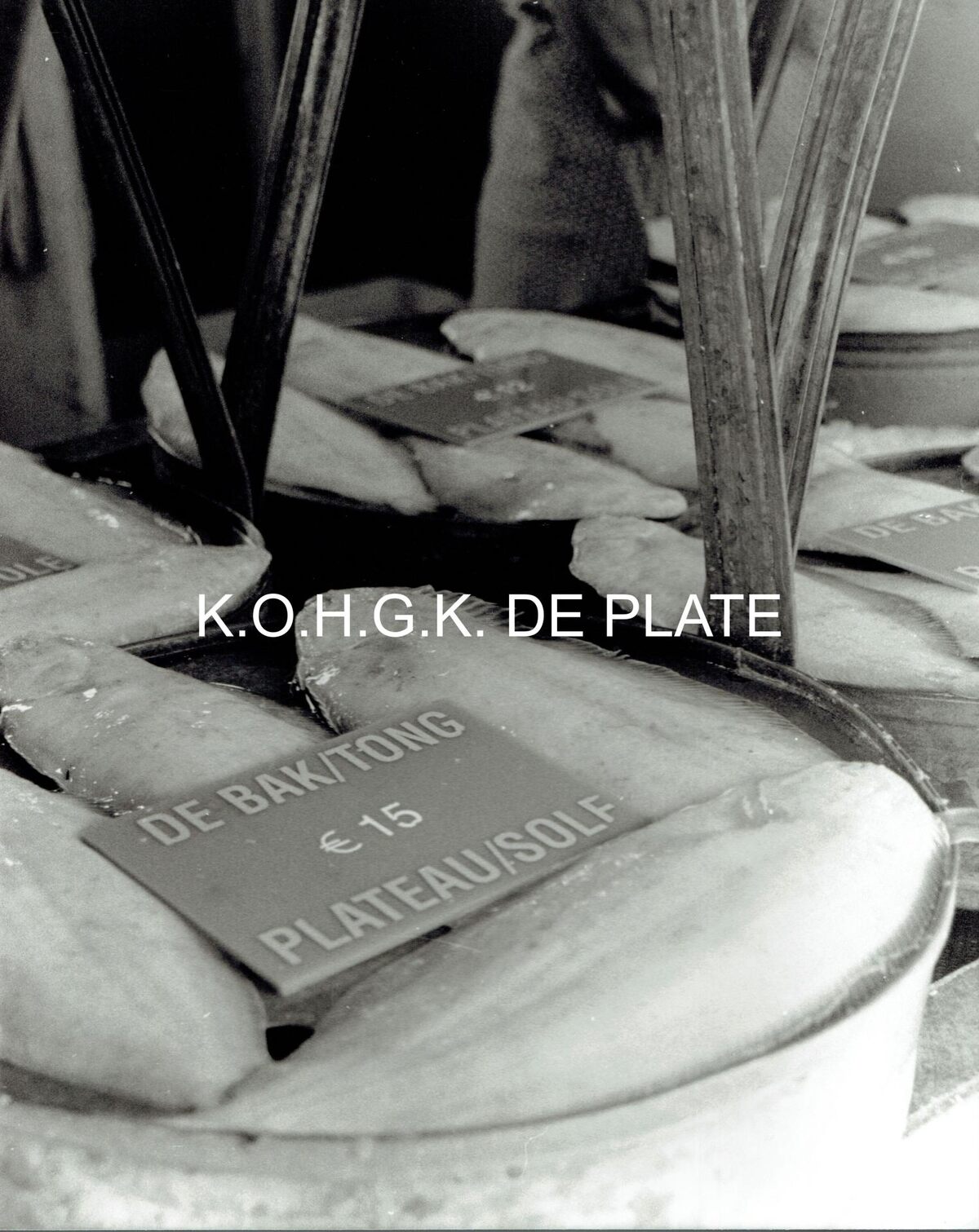 "Zichtn toeng" te koop. Prijskaart : De bak / tong. EUR 15. Plateau / sole.