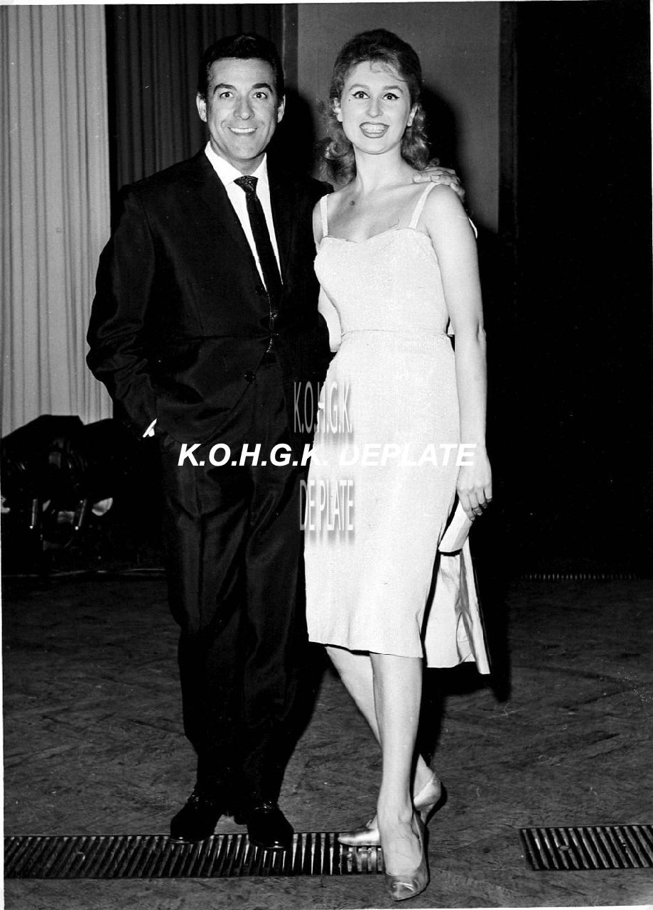 Formaat : 18 x 13 cm. - Luis Mariano in het gezelschap van Linda Kerby, zangeres van het kursaalorkest van Franz Lebrun.