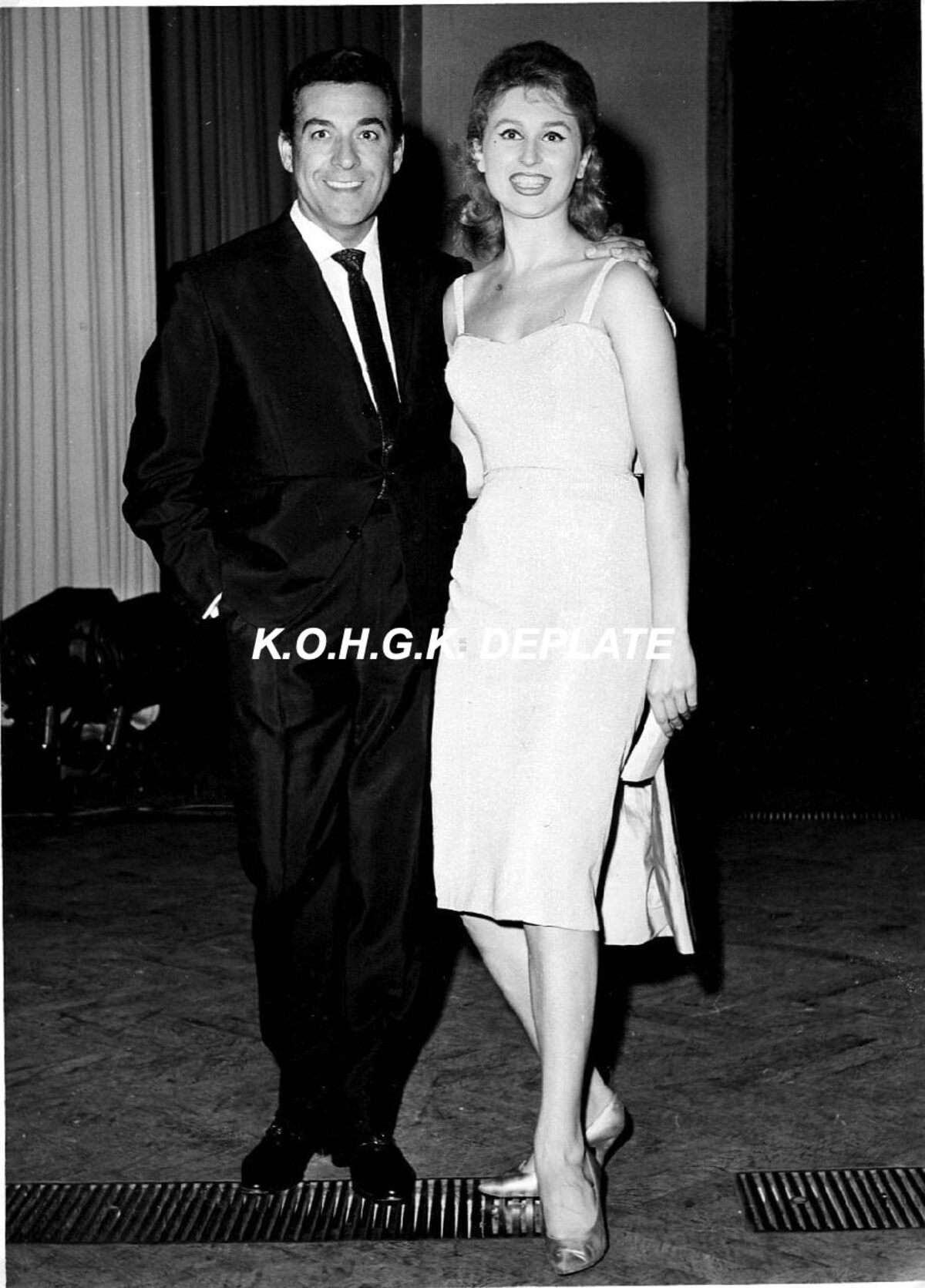 Formaat : 18 x 13 cm. - Luis Mariano in het gezelschap van Linda Kerby, zangeres van het kursaalorkest van Franz Lebrun.