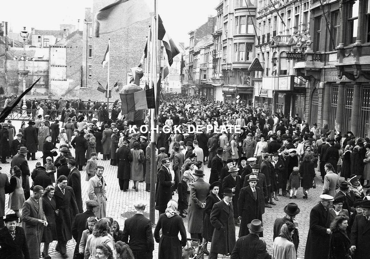 Negatief : 4 x 6,5 cm. - Veel volk op het Wapenplein en in de Kapellestraat (rechtdoor) naar aanleiding van de halfvastenstoet.