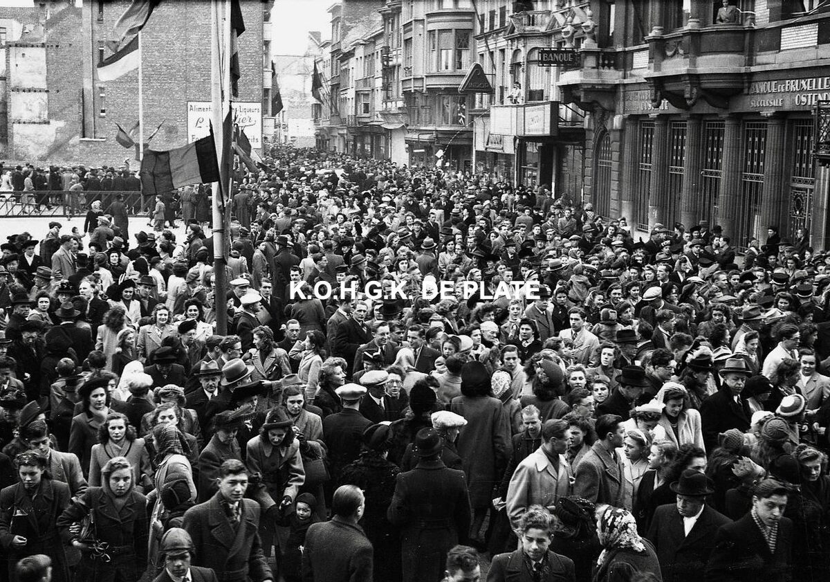 Formaat : 12,5 x 19 cm. - Veel volk op het Wapenplein en in de Kapellestraat (rechtdoor) ter gelegenheid van de halfvastenstoet