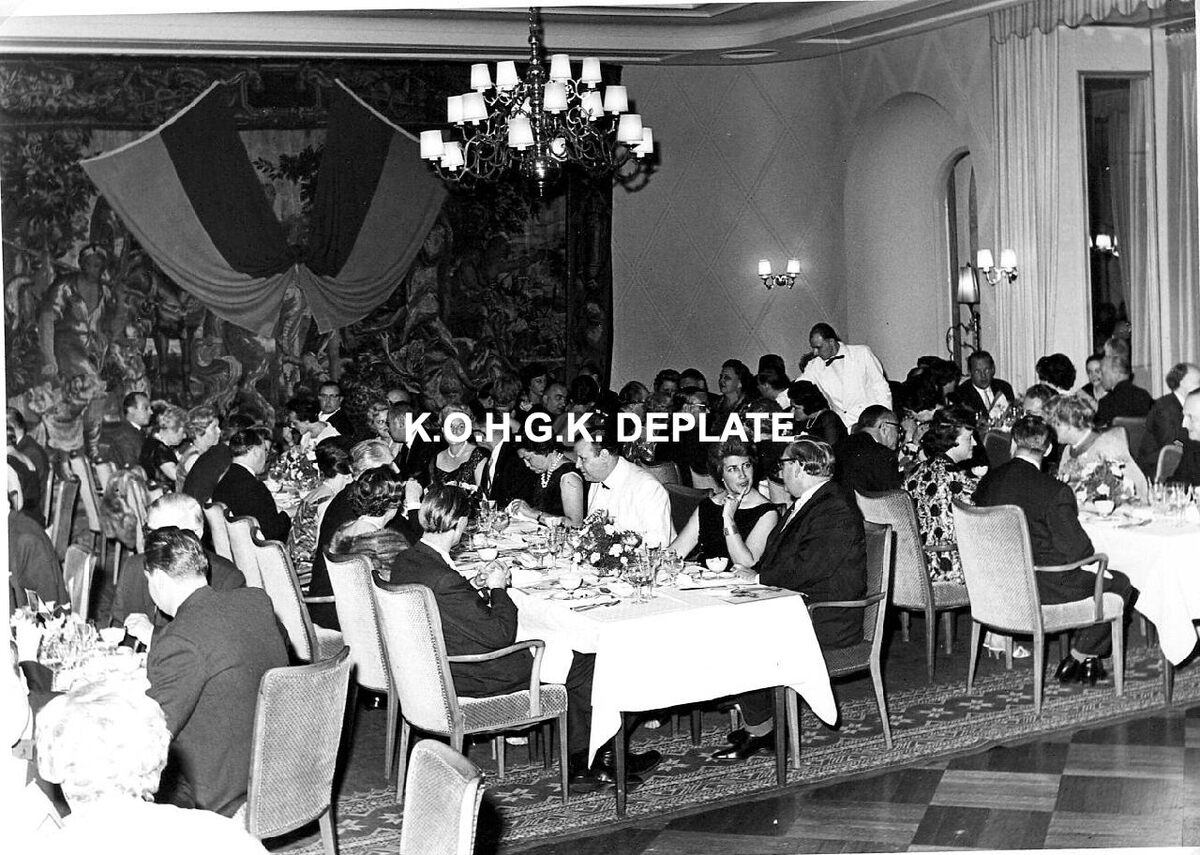 Formaat : 13 x 18 cm. - De genodigden tijdens het diner in een Düsseldorfs hotel.
