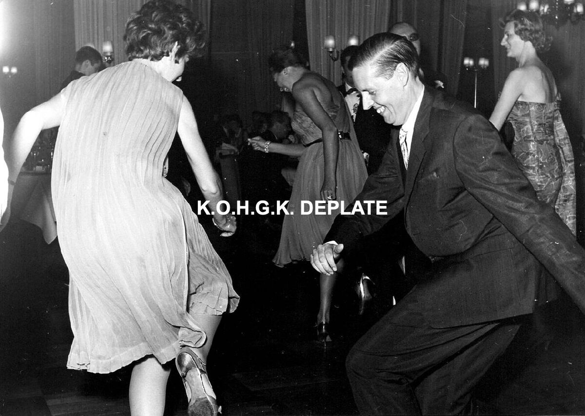 Formaat : 13 x 18 cm. - Na het diner werd er ook gedanst. Burgemeester Jan Piers danst de "Twist", toen populair. Rechts, zijn echtgenote.