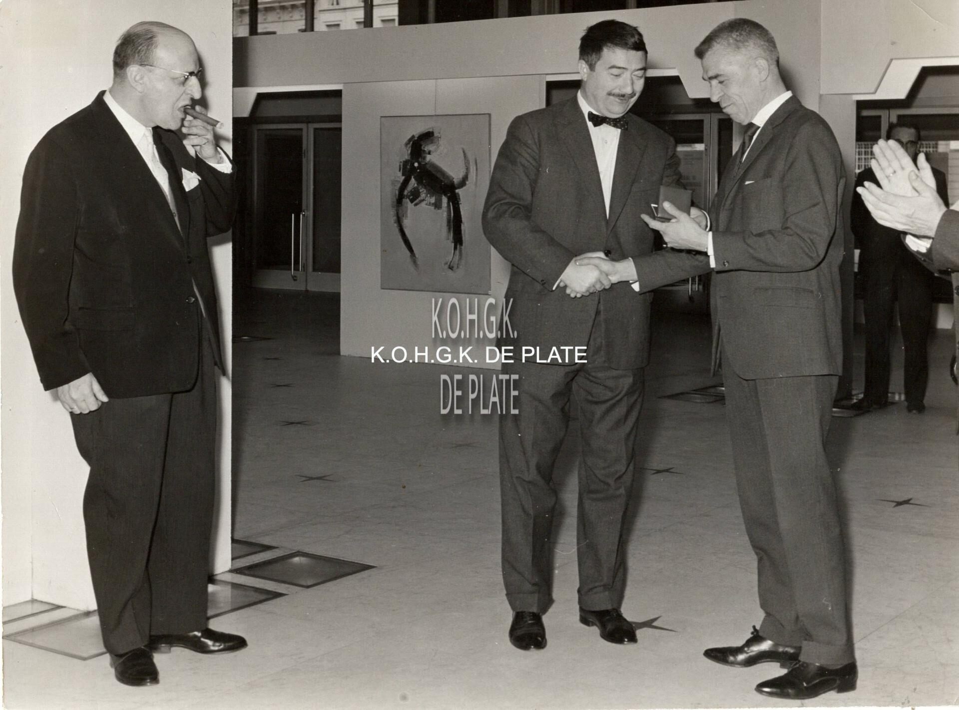 Formaat : 17 x 22,5 cm. - De vernissage ging door op 7 september 1963 in de inkomhal van het Kursaal. Eerste minister Théo Lefèvre, met traditionele sigaar, schepen Roger De Kinder en Maurice Boel. De kunstenaar ontving ook de stadsmedaille.