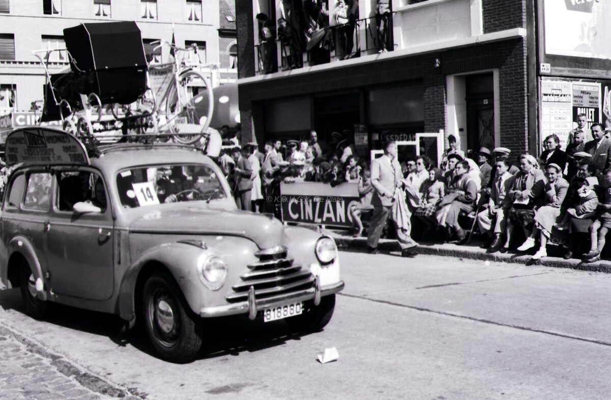 De zomercavalcade van Bredene in de Driftweg. Reclameauto voor kinderwagens Torck en fietsen.