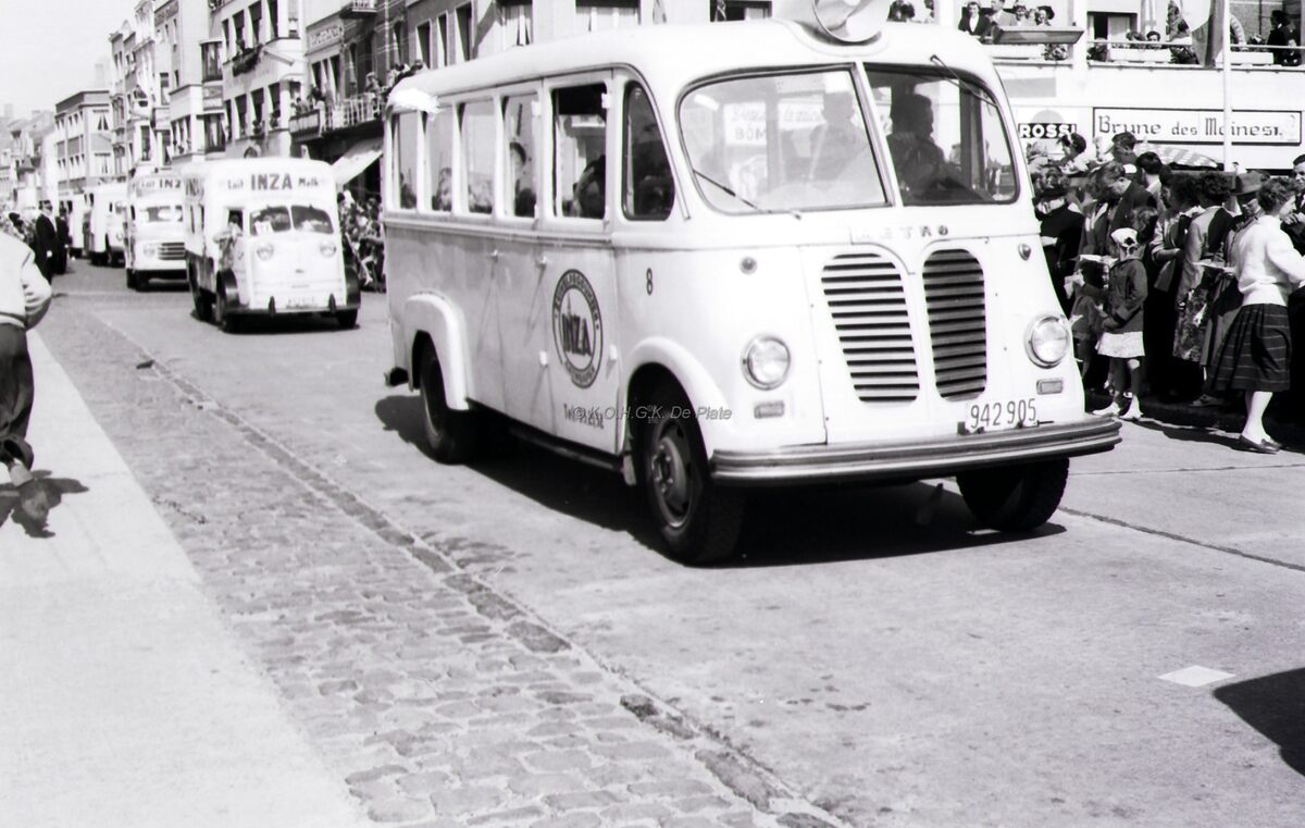 Reclamewagen voor de zuivelprodukten INZA in de Driftweg te Bredene tijdens de zomercavalcade.