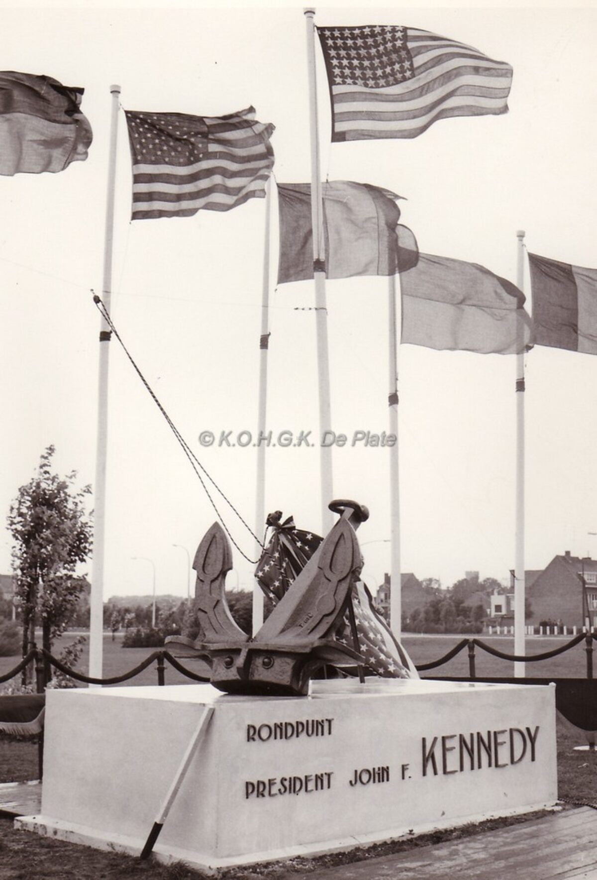 Het monument op het Kennedyrondpunt. Het monument werd onthuld in juli 1964