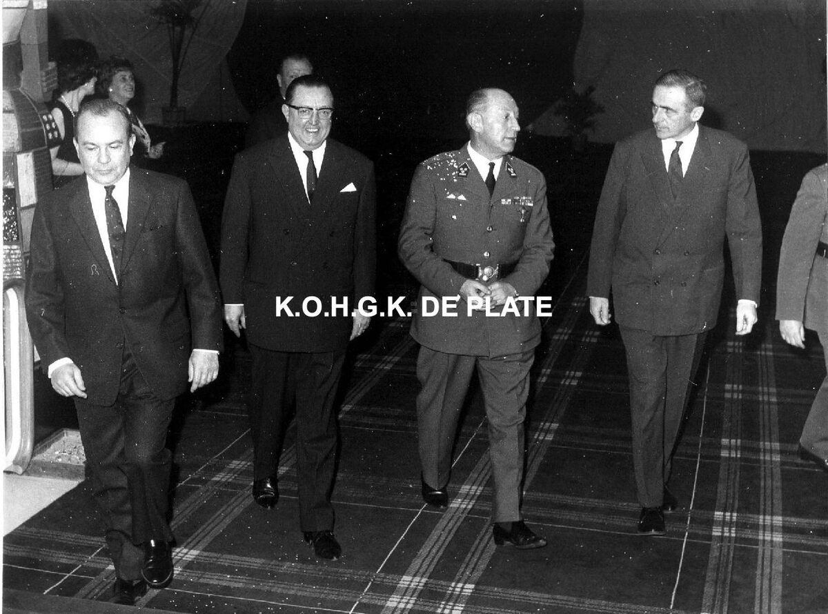 Formaat : 18 x 24 cm. - Kolonel Charles Laurent in het gezelschap van links naar rechts : Emilien Michiels, directeur van de Kursaal, John Lauwereins, schepen en Pierre van Outryve d'Ydewalle, gouverneur van de Provincie West-Vlaanderen.