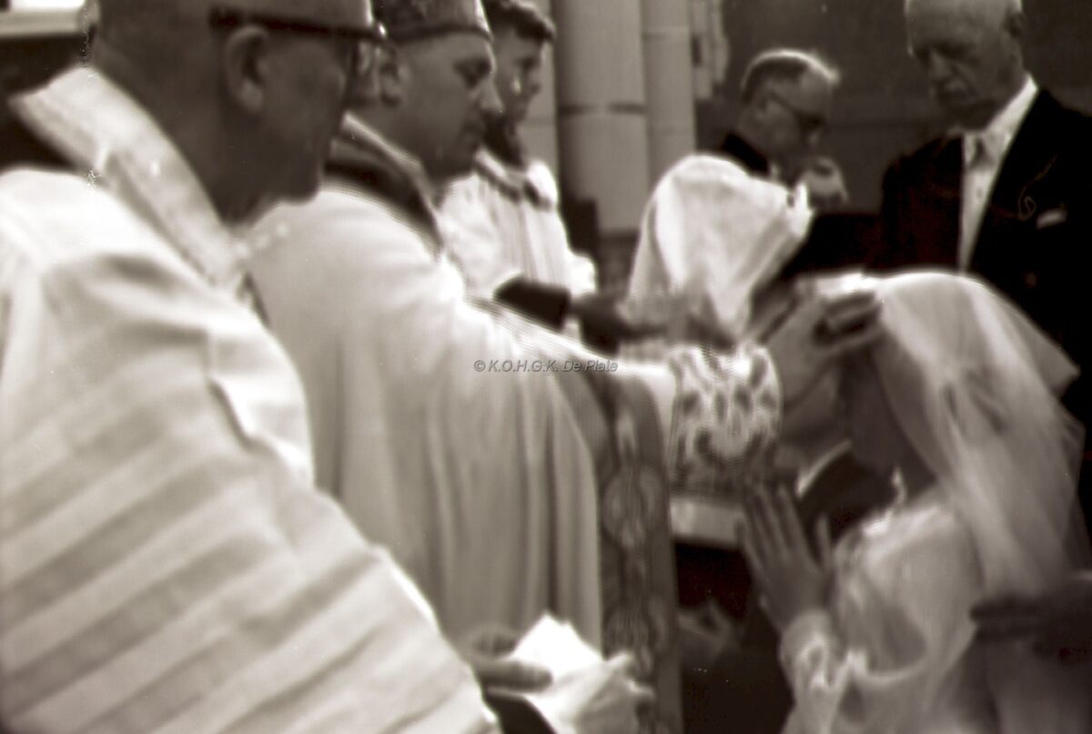 Bisschop Emiel DE SMEDT vormt een meisje en een jongen in de Sint Jozefskerk.