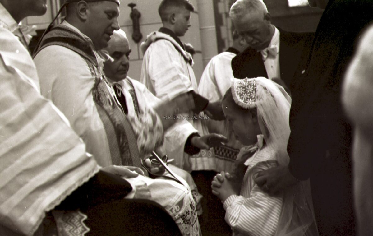 Bisschop Emiel DE SMEDT vormt een meisje in de Sint Jozefskerk.