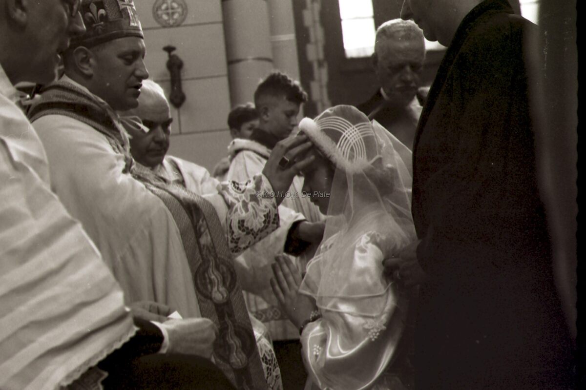 Bisschop Emiel DE SMEDT vormt een meisje in de Sint Jozefskerk.