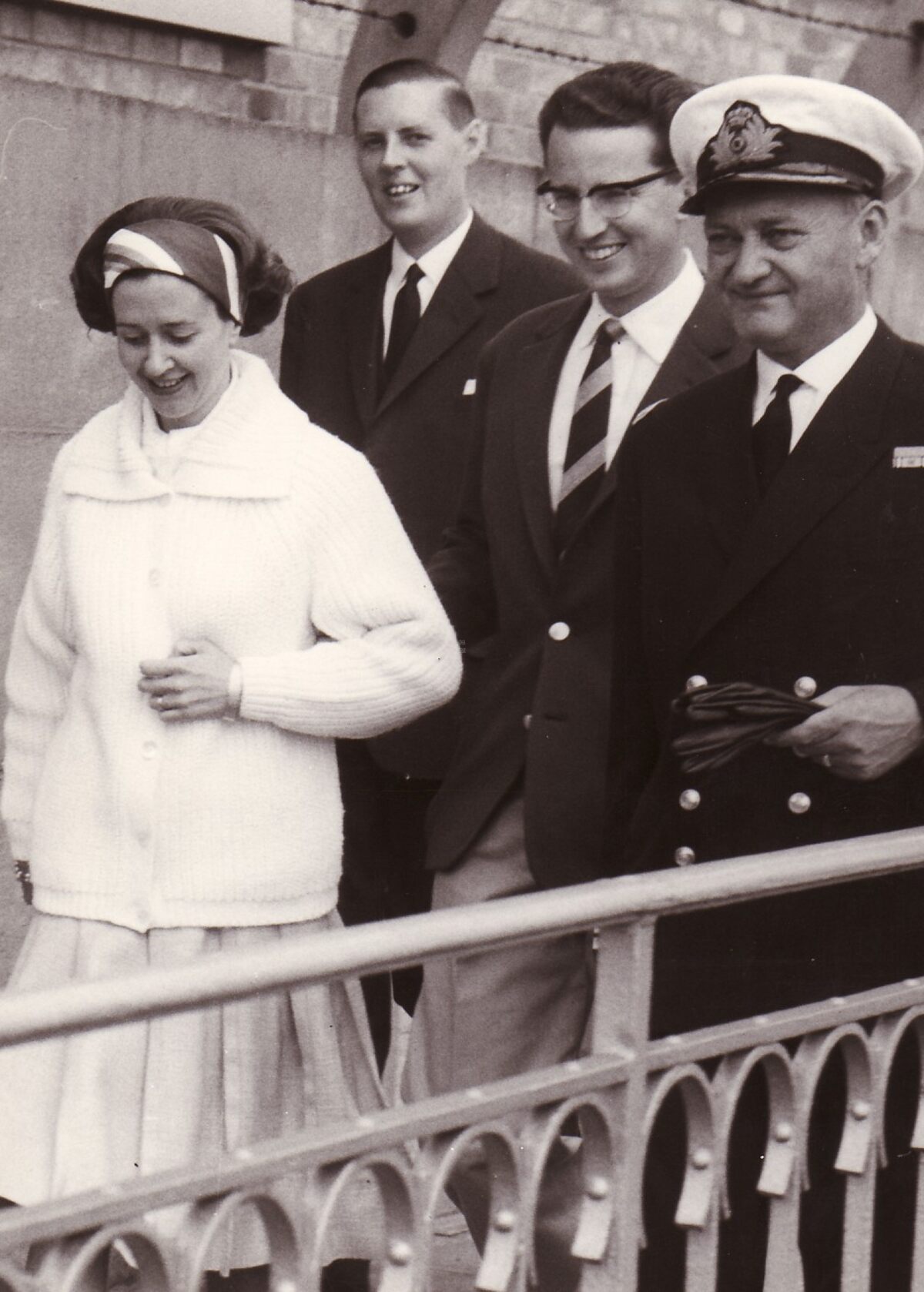 Formaat : 13 x 18 cm. - Koning Boudewijn en Koningin Fabiola in gezelschap van fregatkapitein Jerome Tanghe en burgemeester Jan Piers.