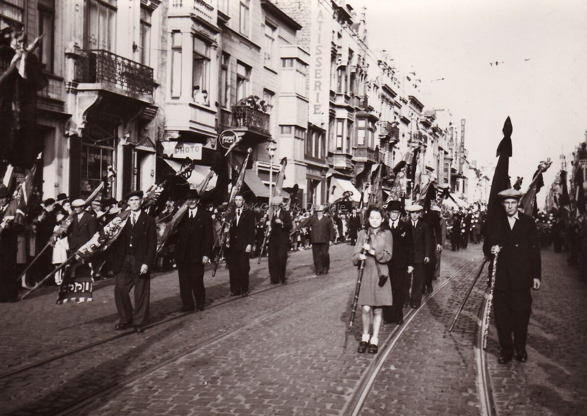 De begrafenisstoet van de schepen van openbare werken Jules PEURQUAET op de Alfons Pieterslaan, nabij Petit Paris.