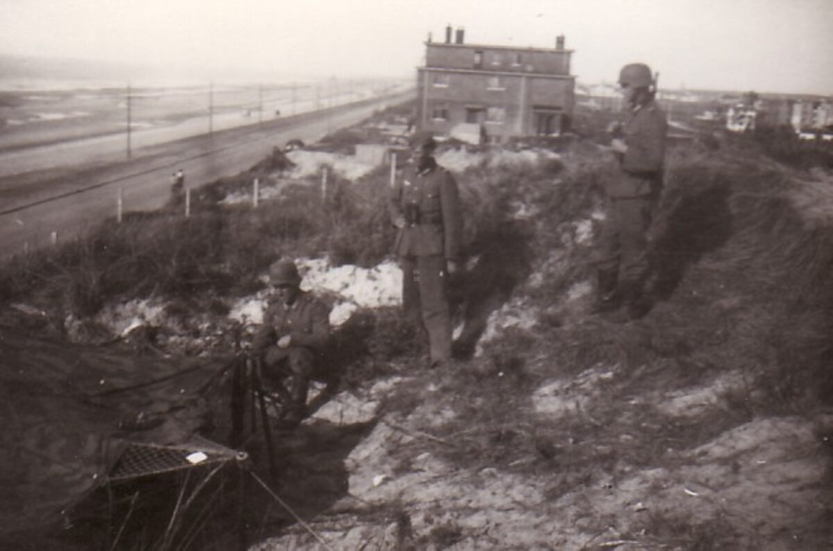 Formaat : 9 x 6 cm. - Duitse militairen in de duinen nabij Home Sainte Suzanne.