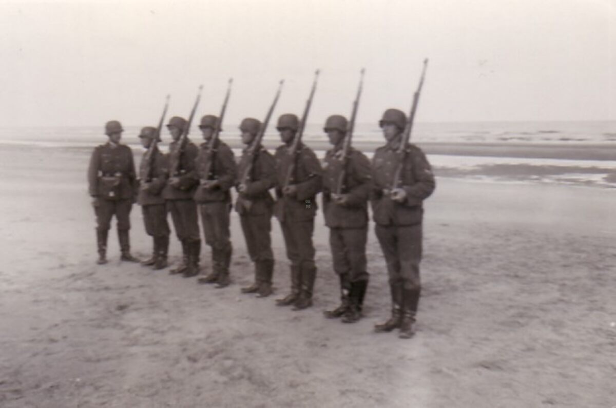 Foto : 9 x 6 cm. - Duitse soldaten oefenen op het strand van Raversijde.