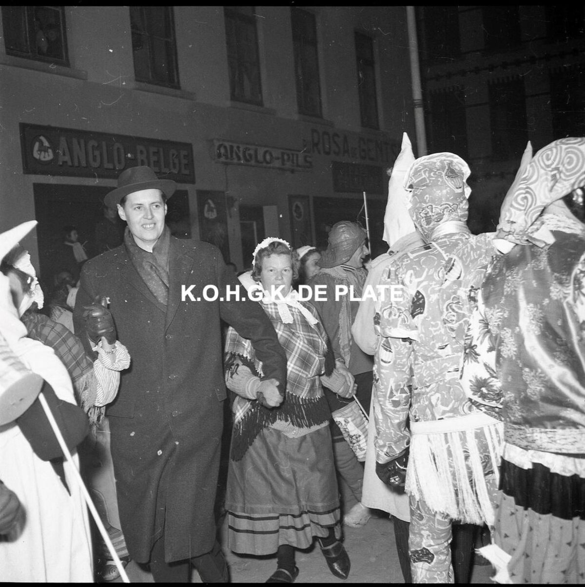 Negatief : 6 x 5,5 cm. - Burgemeester Jan Piers dansend in gezelschap van de "Vismijnvrieden"