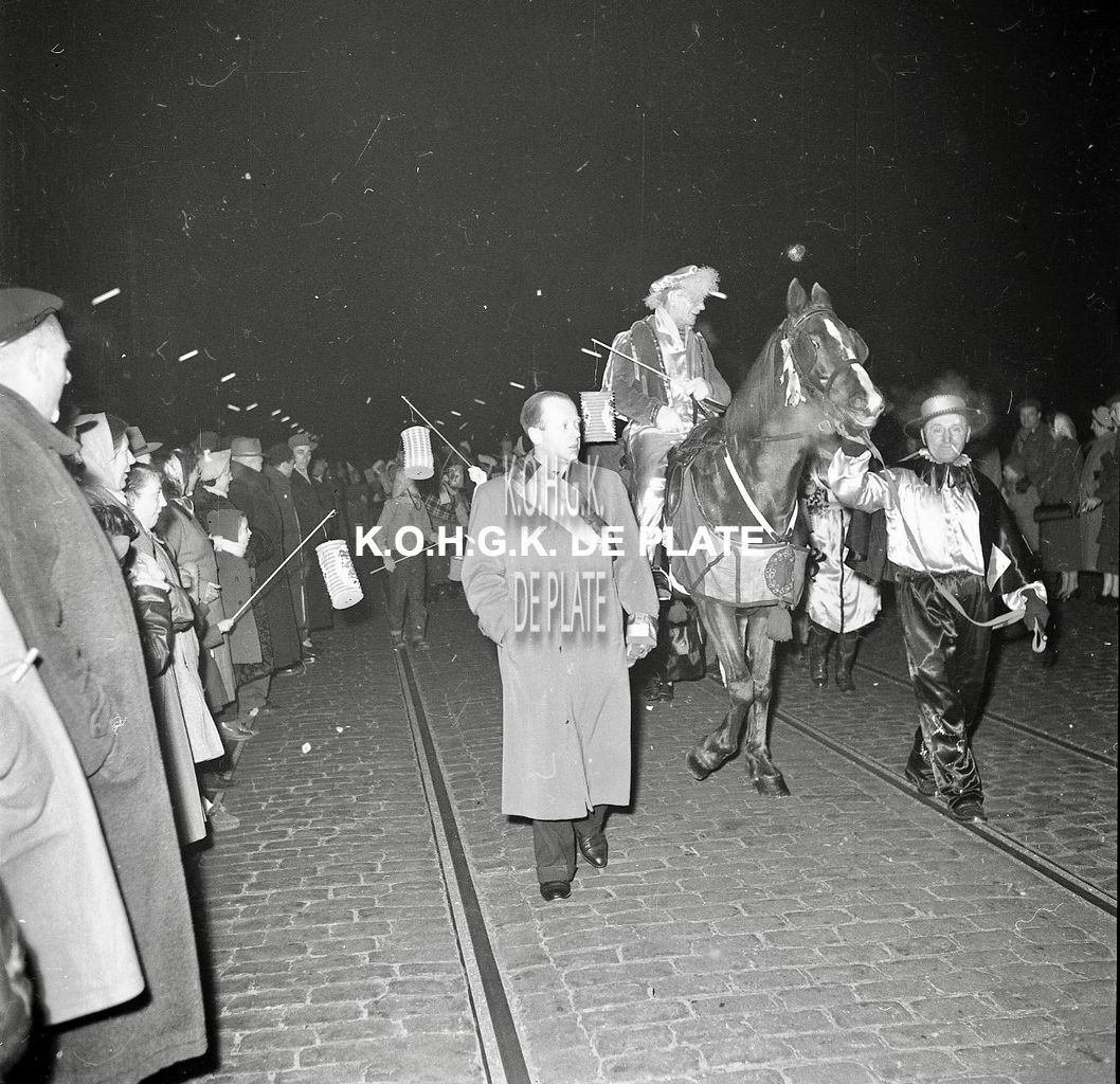 Negatief : 6 x 5,5 cm. - De Prins Carnaval te paard, vooraan de stoet op de Visserskaai