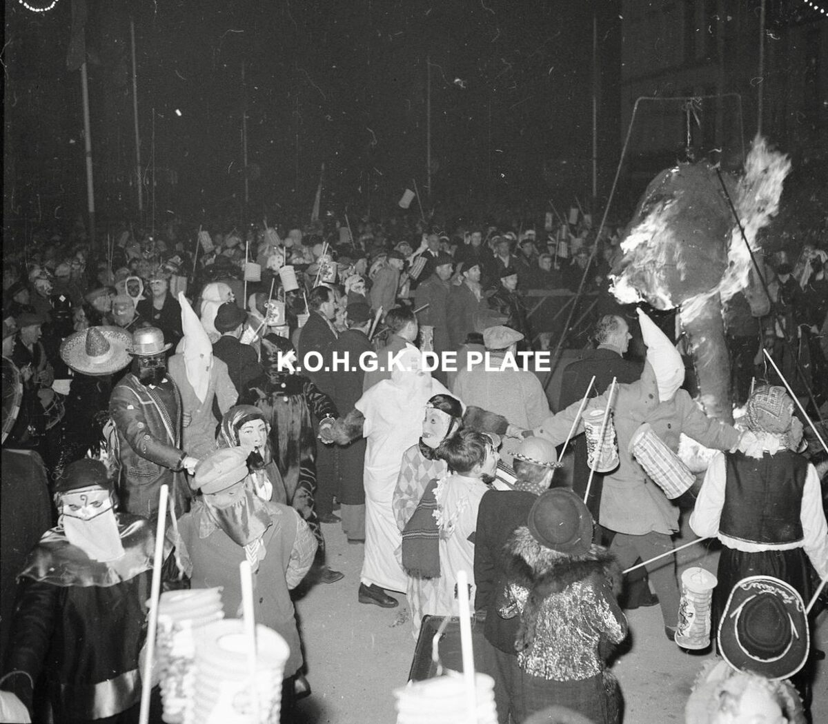 Negatief : 6 x 5,5 cm. - De pop wordt verbrand na afloop van de stoet