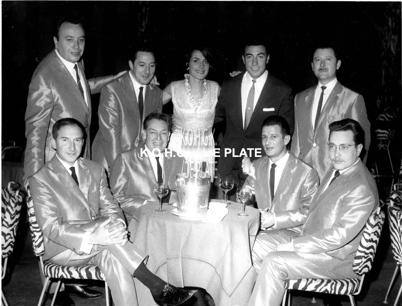 2 exemplaren, formaat : 18 x 24 cm. en 12,5 x 17,5 cm. - Merino Costa en zijn muzikanten en de zangeres Rita Gutte in de nightclub "La Champagne". Zittend links, pianist Franz André.