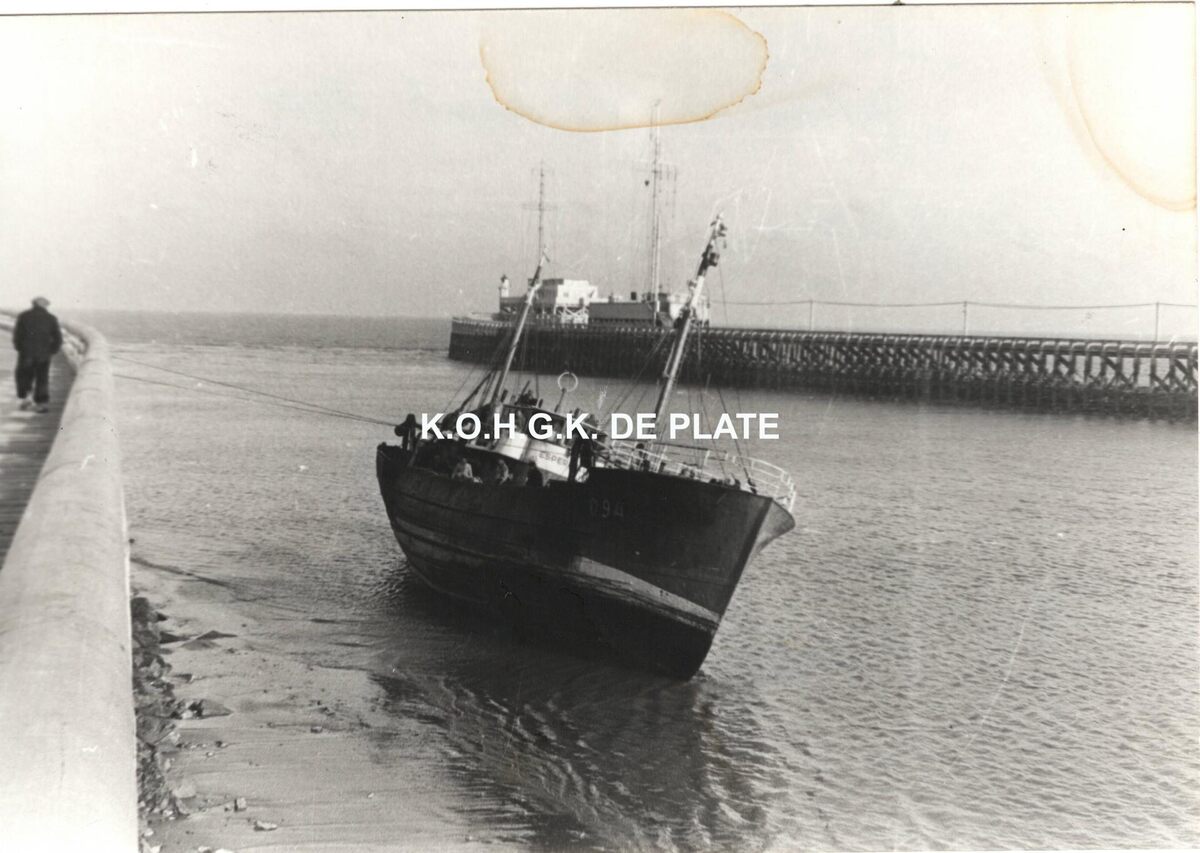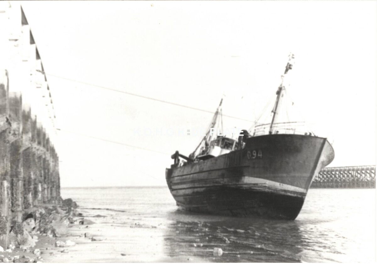 Formaat : 10 x 15 cm. - De O.94 "Rosa - Arthur" gebouwd in 1936 op de werf Boel en zonen te Temse in opdracht van David Vileyn. In 1954 werd het vaartuig verkocht aan Charel en Victor Seghers en herdoopt tot "Esperance". Het vaartuig werd geschrapt uit onze vloot in 1977 en gesloopt. De O.94 strandde op 11/03/1955 in de havengeul