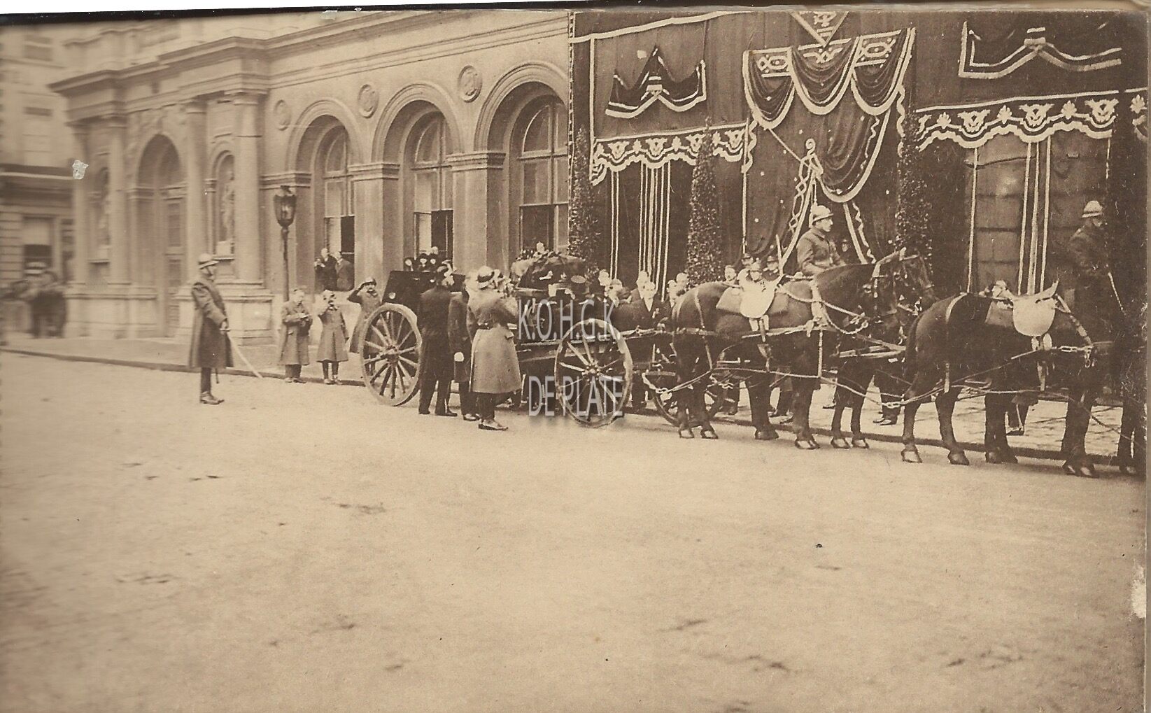 N°2. Sur un canon de campagne, portant encore les traces de la bataille, le corps du Soldat Inconnu est placé pour être transporté triomphalement au pied de la colonne du Congrès. De begrafenisstoet gereed om te vertrekken aan het Noordstation (Brussel), op weg naar de Congreskolom. - Map 029A/63b