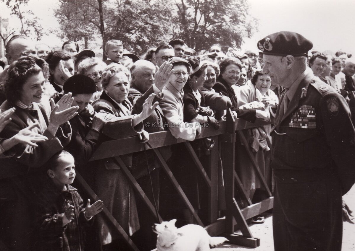 Veldmaarschalk MONTGOMERY op het Canadaplein bij het publiek tijdens zijn tweede bezoek aan Oostende.